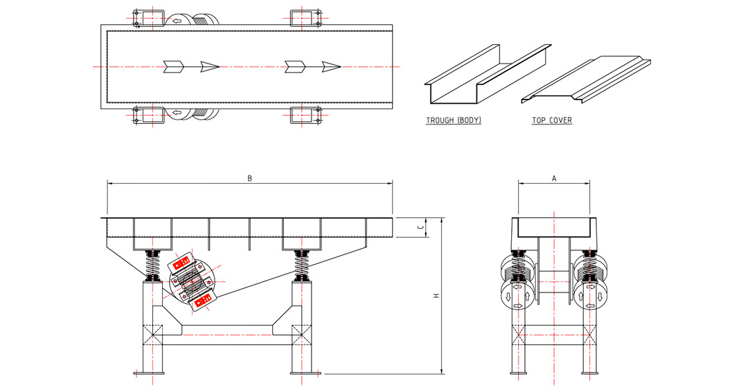 | Model | Capacity (Ton/Hr) | A | B | C | H | Vibrator (kw x Q'ty) |