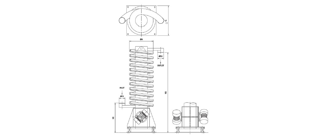 | Model | Capacity (Kg/Hr) | A | C | H1 | H2 | Power (Kw * Q'ty) | Weight (kg) |